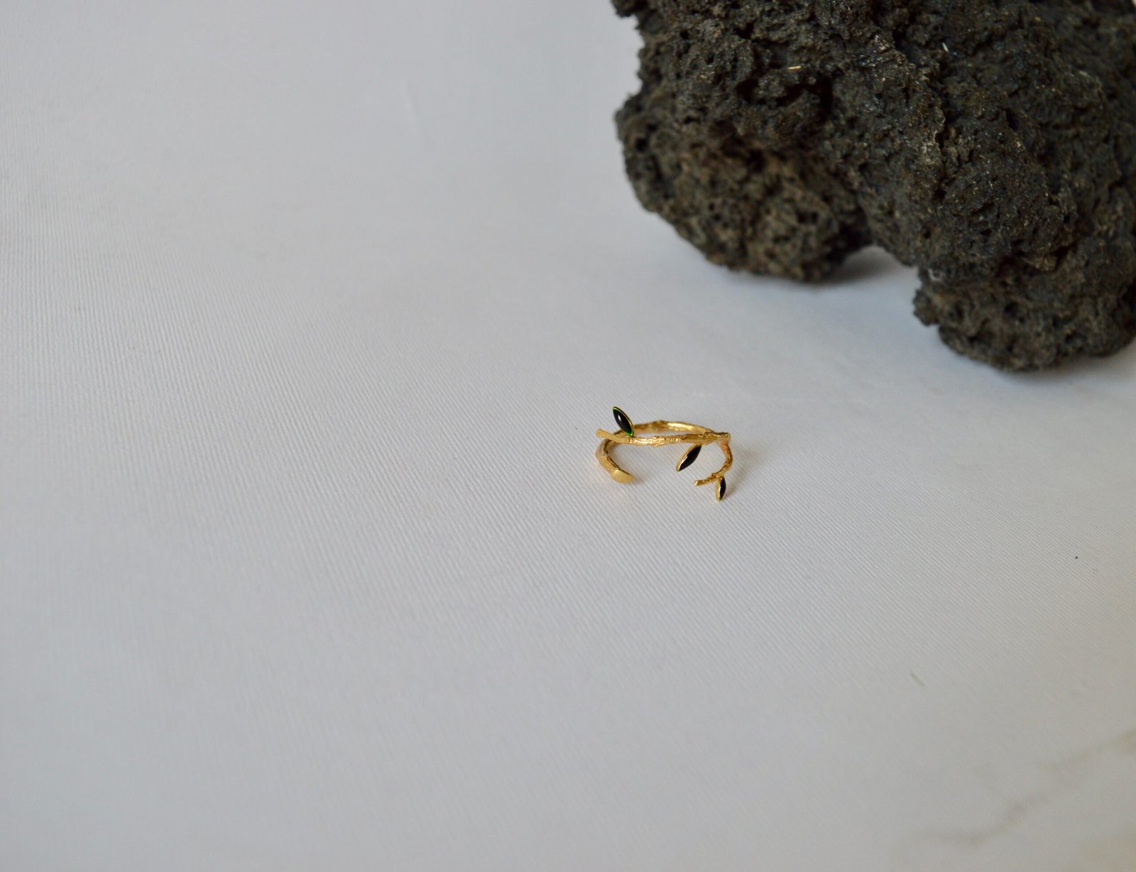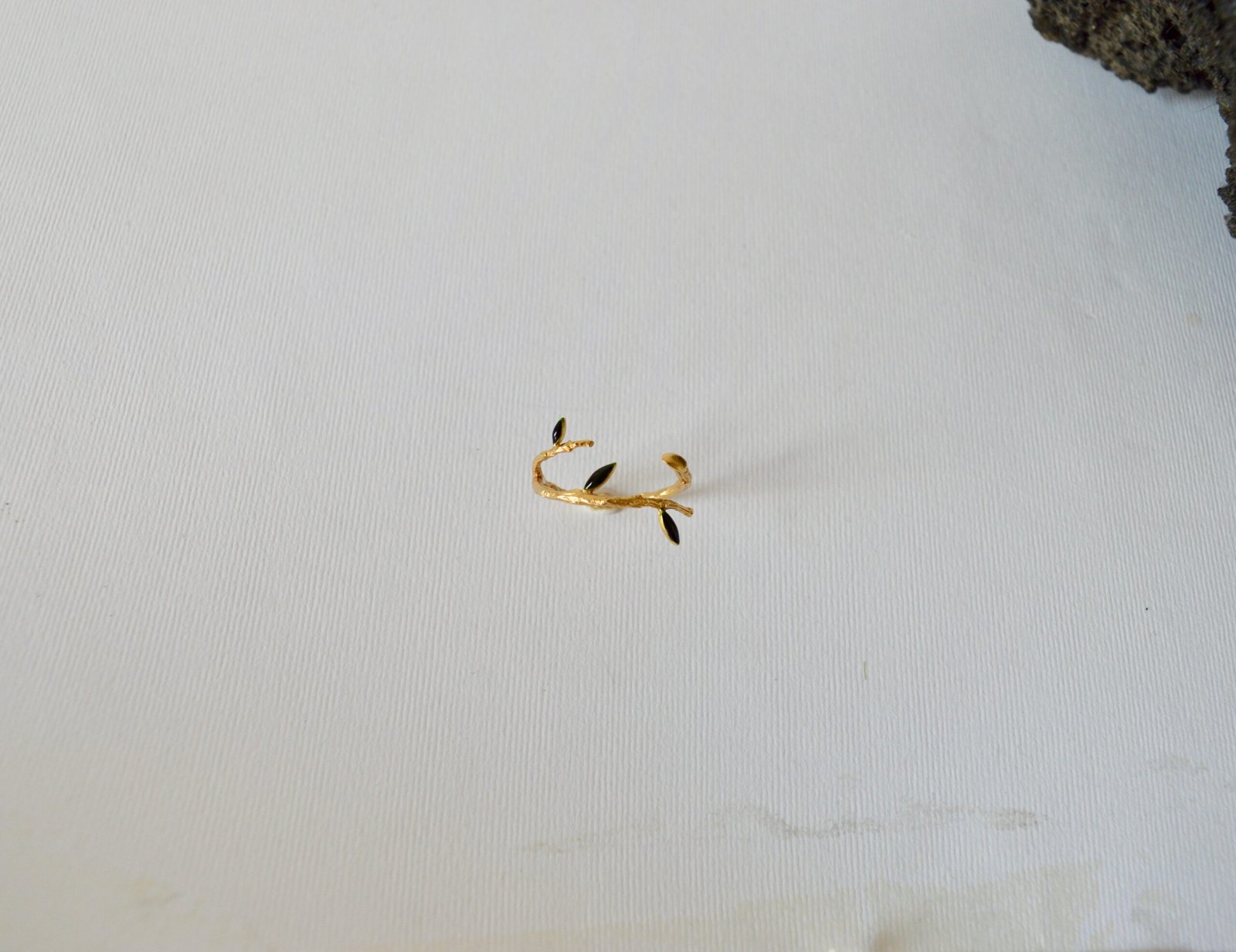 Το δαχτυλίδι kladia είναι κατασκευασμένο απο ασημι 925 και επιχρυσωμένο με λεπτομέρειες πράσινου σμάλτου στα φύλλα. Το μπροστινό μέρος του δαχτυλιδιού ανοιγοκλείνει, ώστε να προσαρμόζεται. Πρόκειται για ένα χειροποίητο κόσμημα, οπότε ενδέχεται να υπάρχουν μικρές διαφορές με την φωτογραφία.